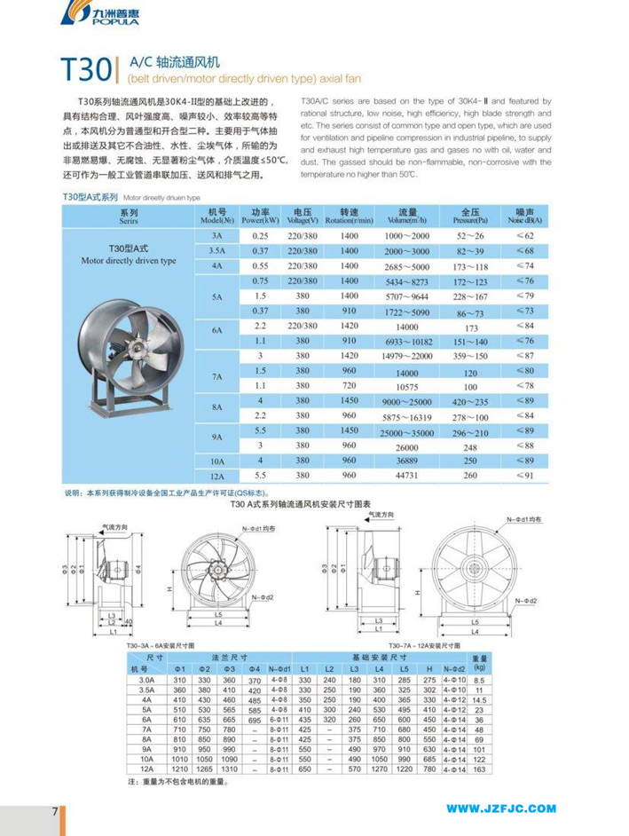 九洲風(fēng)機|T30A/C軸流通風(fēng)機(belt driven/motor diretly dnven type) axial fan