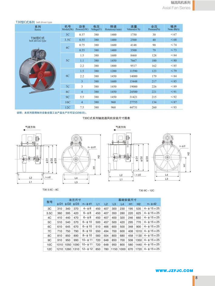 九洲風機|T30A/C軸流通風機(belt driven/motor diretly dnven type) axial fan