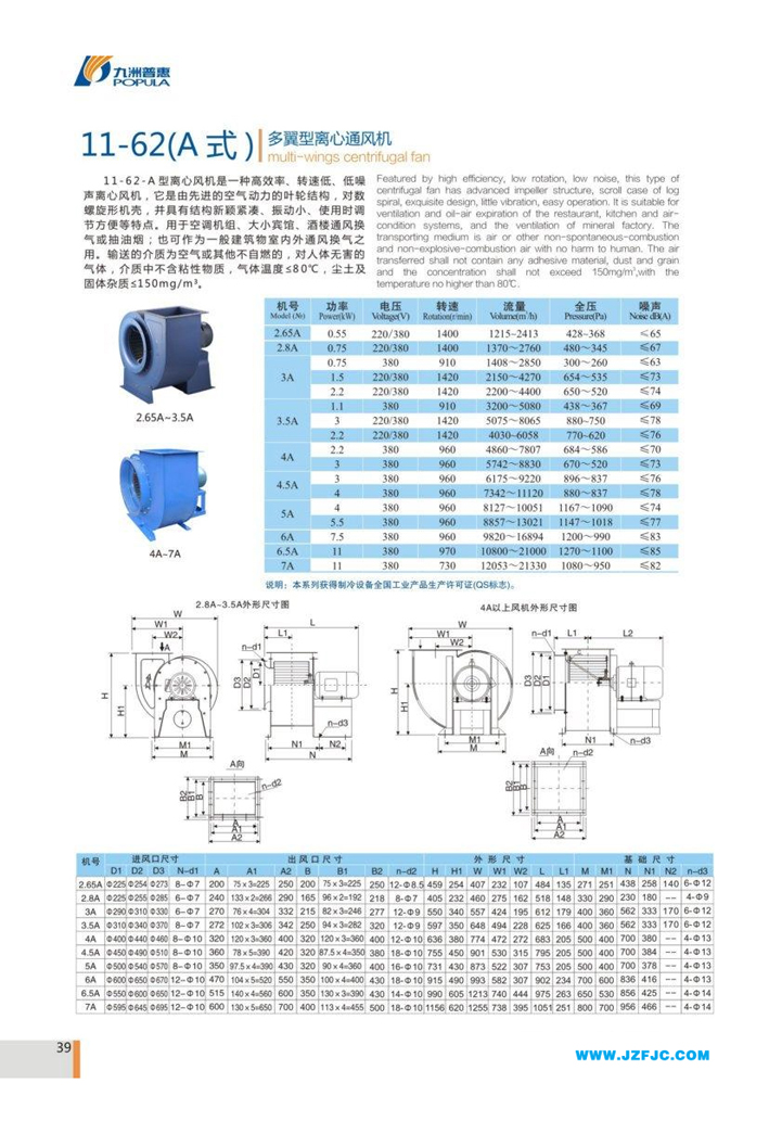 11-62-A型商心風(fēng)機(jī)是一種高效率、轉(zhuǎn)速低、低噪聲離心風(fēng)機(jī),它是由先進(jìn)的空氣動(dòng)力的葉輪結(jié)構(gòu),對(duì)數(shù)收旋形機(jī)殼,
